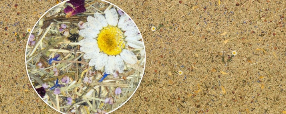 Der Frühstücksraum des Hotels Gmachl im Salzburger Flachgau präsentiert sich auch in der Einrichtung regional und verwendet Heutapeten mit bunten Blüten, welche auf einer österreichischen Heuwiese zu finden sind.